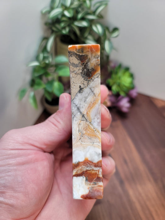 Banded Aragonite Moon Crystal: Brown, Orange & White, 4 Inches