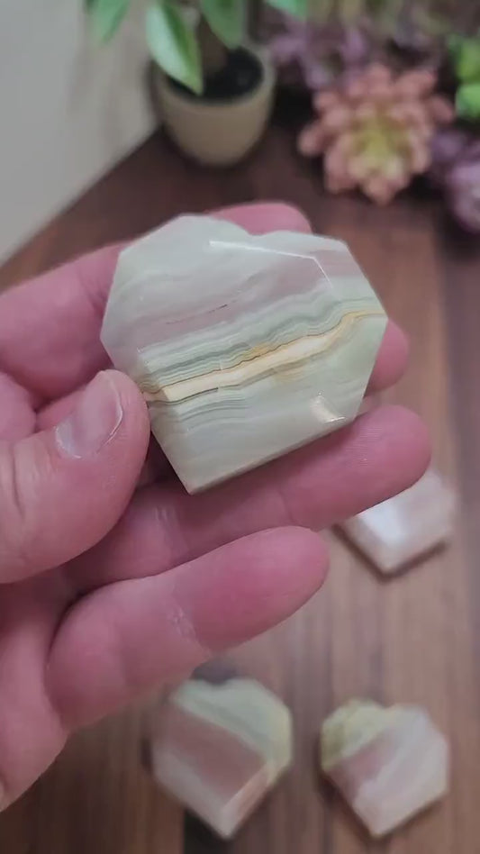 Pink Banded Onyx Faceted Hearts | Size | Standing Heart Carvings | Intuitively Chosen