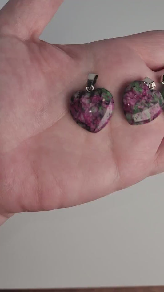 Ruby in Zoisite Heart Pendant, Crystal Necklace Charm (Green Pink Stone)