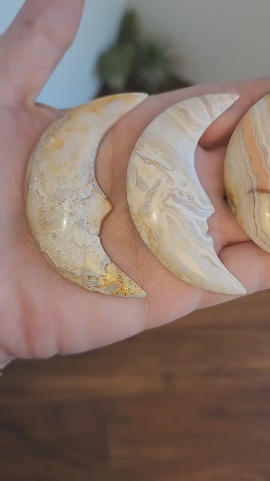 Crazy Lace Agate Moon Crystal: Choose Your Carved Crescent Moon