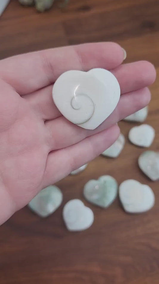 Crystal Shiva Shell Heart: Swirled White and Rainbow Colors