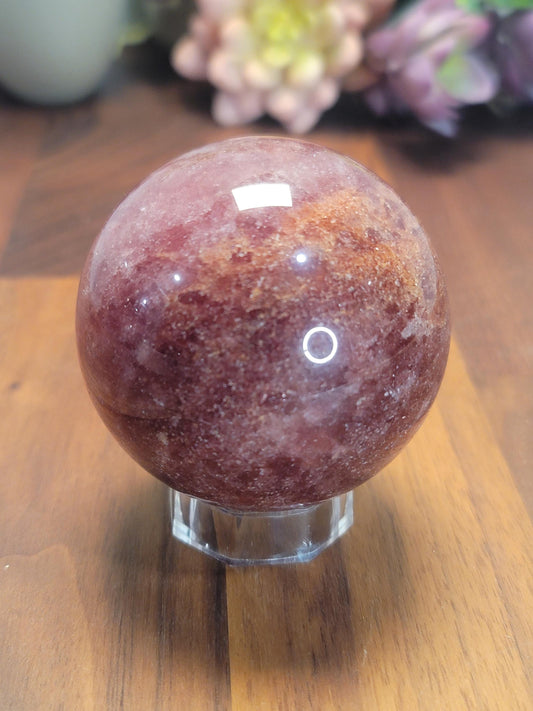 Strawberry Quartz Crystal Sphere: Pink, Red, and Orange (2.4 Inches)