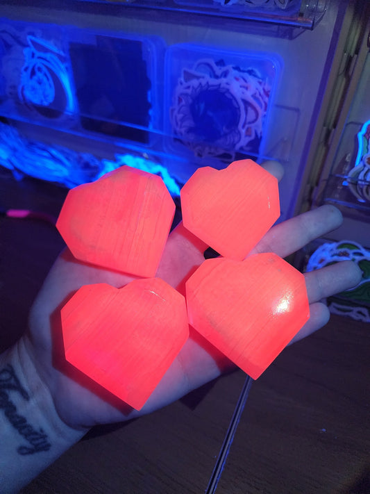 Mangano Calcite Faceted Heart | Neon Pink UV Reactive | White & Pink Banded Crystal | Intuitively Chosen