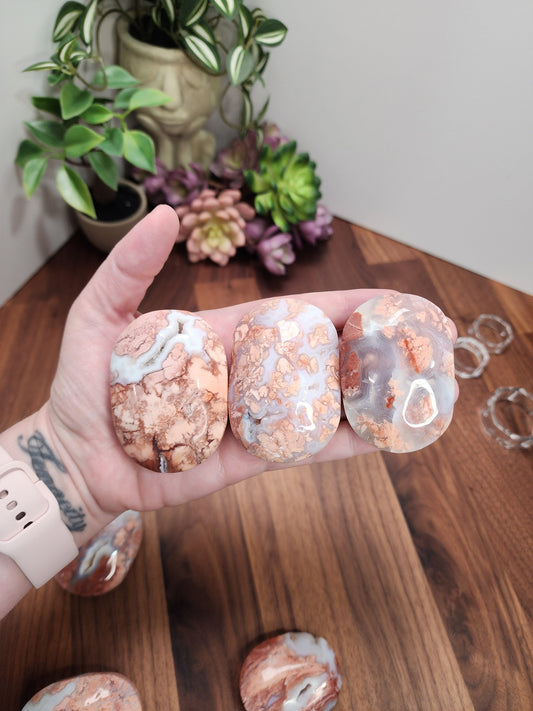 Pink Flower Agate Palm Stone (64 MM): ADHD Fidget Pocket Crystal