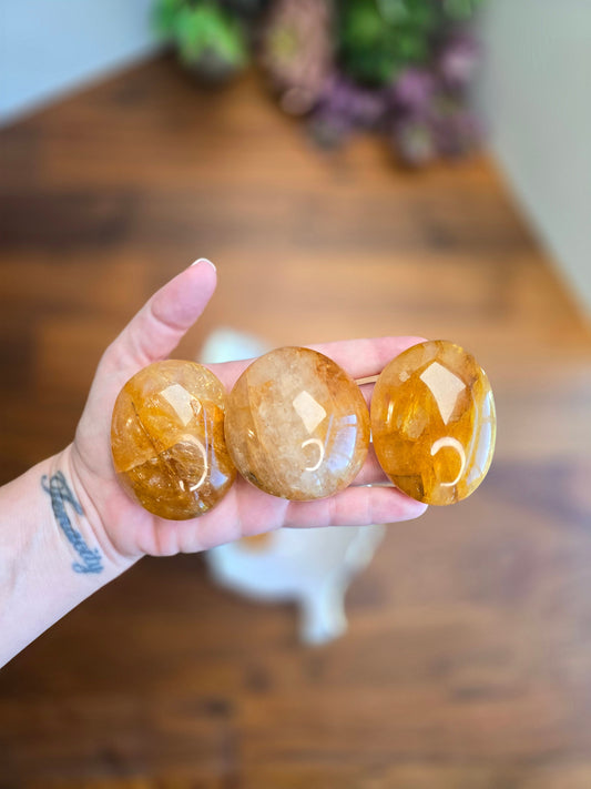 Golden Healer Palm Stone: Large Yellow Pocket Crystal, ADHD Fidget