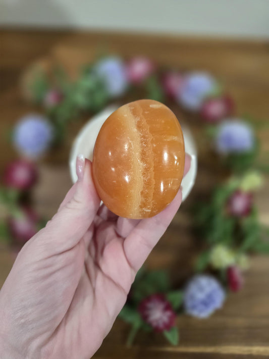 Orange Calcite Palm Stone: Creamsickle Crystal with Banding