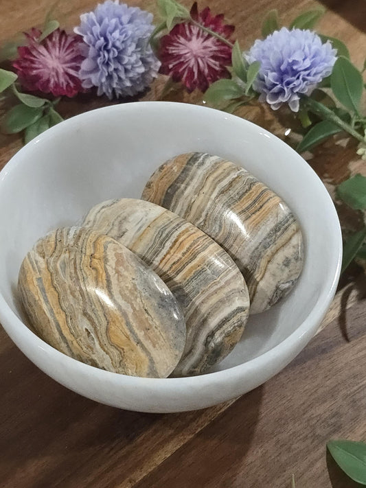 Yellow Aragonite Palm Stone: Banded Calcite Desk Ornament