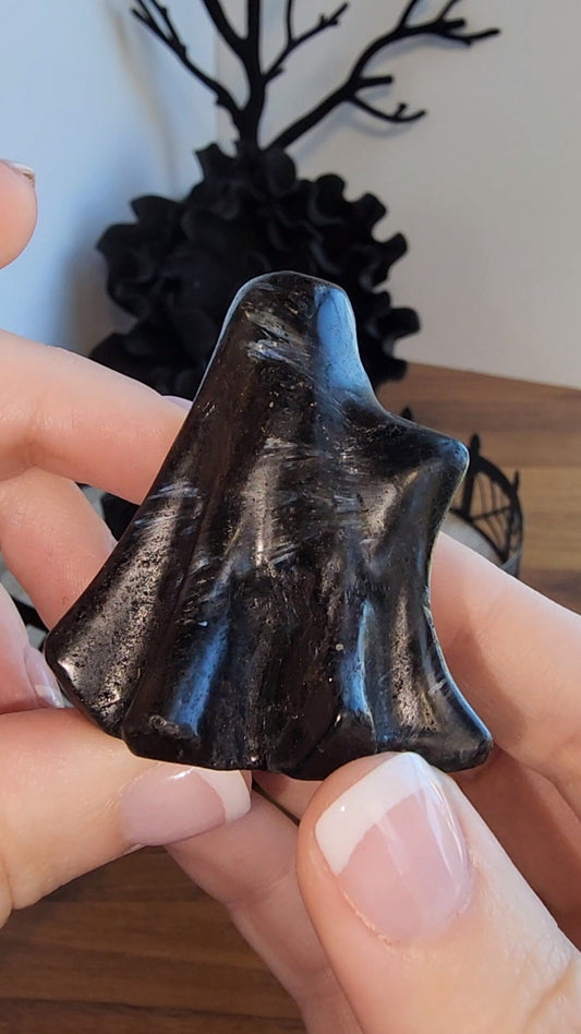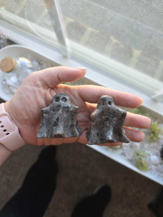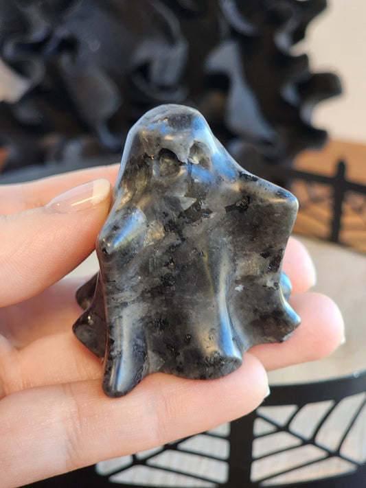 Spooky Ghost Crystal | Larvakite | Halloween | Spooky Season Crystals | Cute 3D Carving | Witchy Vibes | Low Blue Flash |Intuitively Chosen