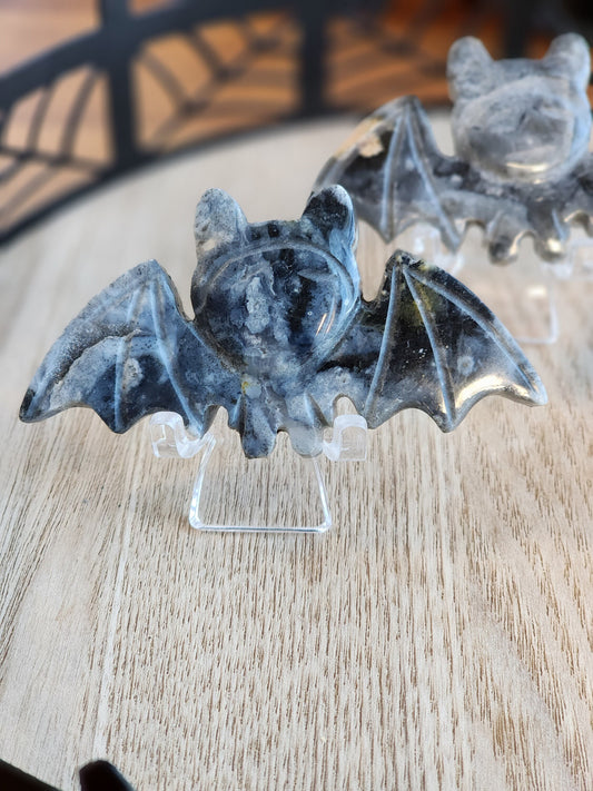 Cute Crystal Bat! | Pyrite in Quartz | Gray Vampire Bat Carving | Halloween Crystals | Gothcore | Spooky Season | Intuitively Chosen