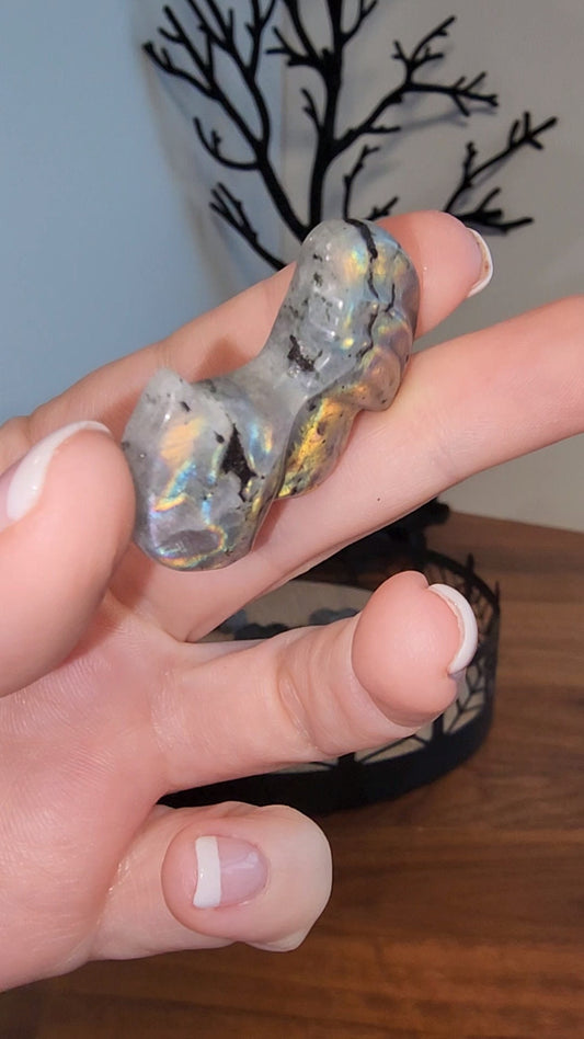 Flashy Labradorite Mini Skull: Halloween Crystal Decor