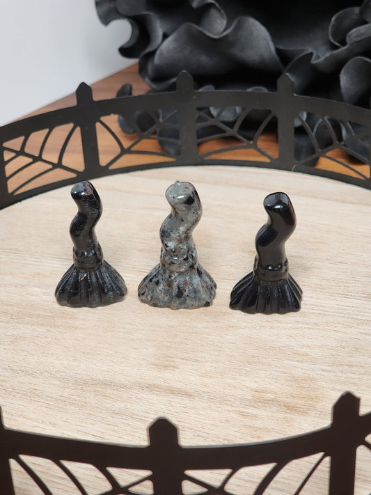 Crystal Witch’s Brooms | Mini Stone Broomstick Charms for Altar Decor, Spooky Season or Halloween Decorations, and Everyday Witchy Gifts
