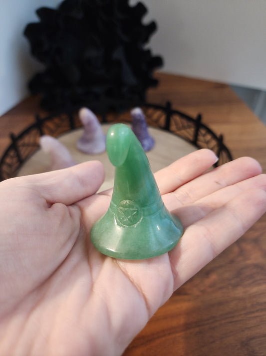Crystal Witch Hat: Halloween Altar Decor - Aventurine, Lepidolite, Rose Quartz