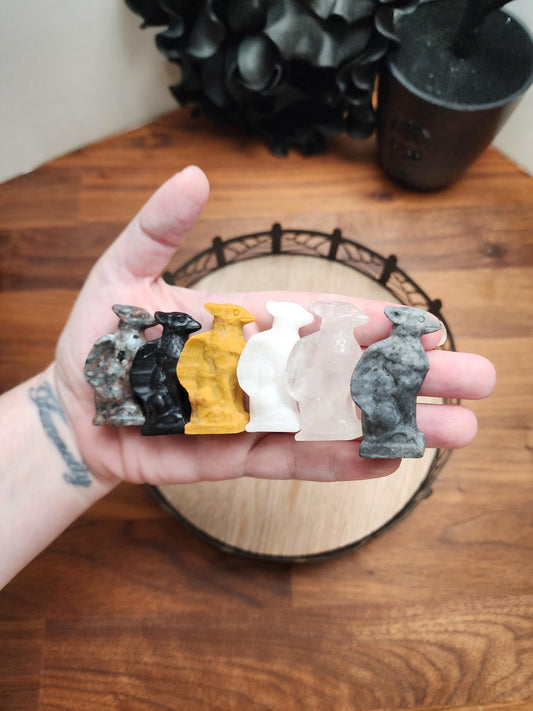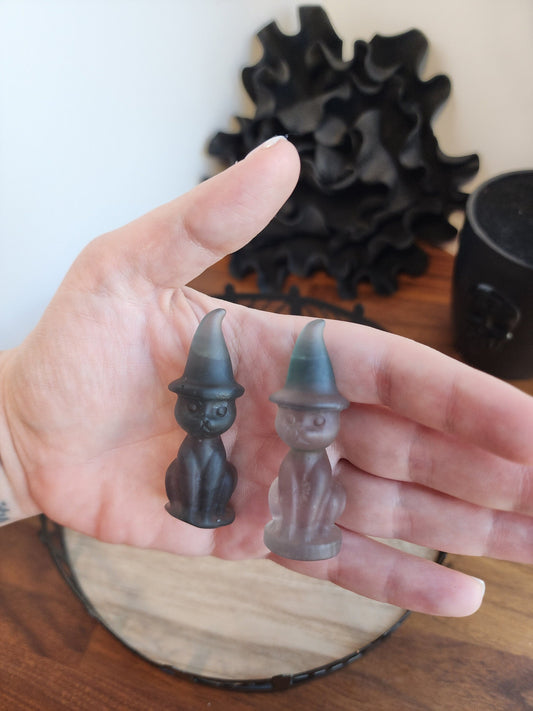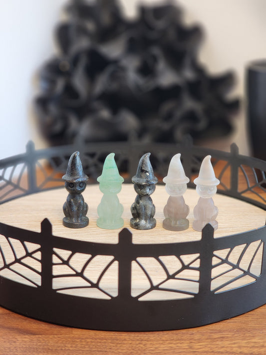 Crystal Witch Cat Mini: Larvakite, Fluorite - Halloween Decor