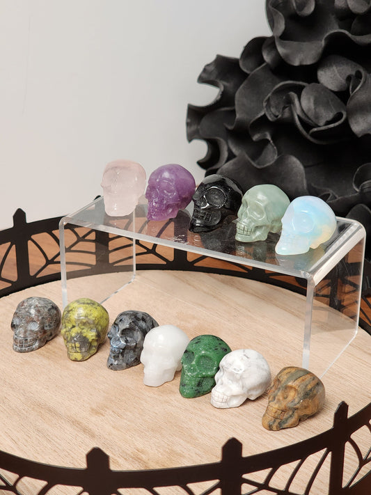 Mini Crystal Skulls | Under 1" | Spooky Hand Carved Halloween Decor | White, Rose, Green, Black, Opalite, Purple | Spooky Scary Skeletons