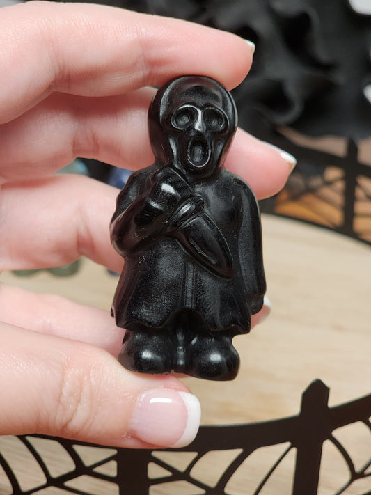 Screamer Crystal: Horror Movie Villain Carved in Obsidian, Labradorite, Sodalite