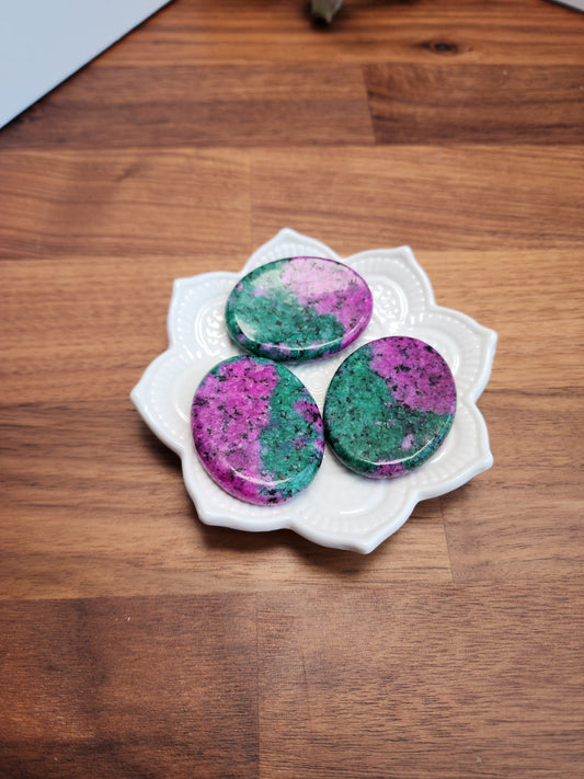 Ruby in Zoisite Worry Stone | 1.77" | Hot Pink & Bright Green Crystal | UV Reactive | Pocket Crystals | ADHD Fidget | Dye Enhanced Quartzite