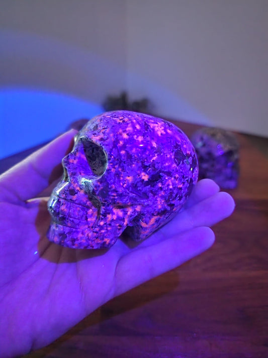 Yooperlite Crystal Skull: 3" UV Reactive Halloween Decor