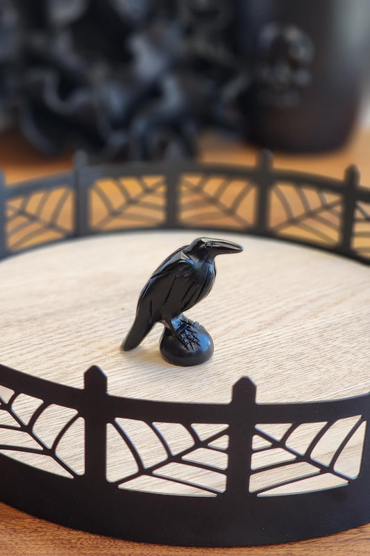 Mini Crystal Crows | Black Obsidian Raven Carving | 1.5" | Vulture Bird for Spooky Season | Nevermore Edgar Allen Poe, Lucky Halloween Omens
