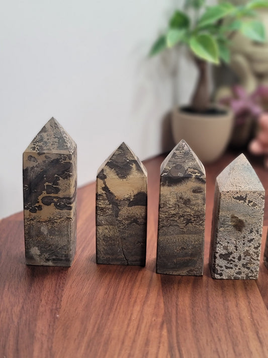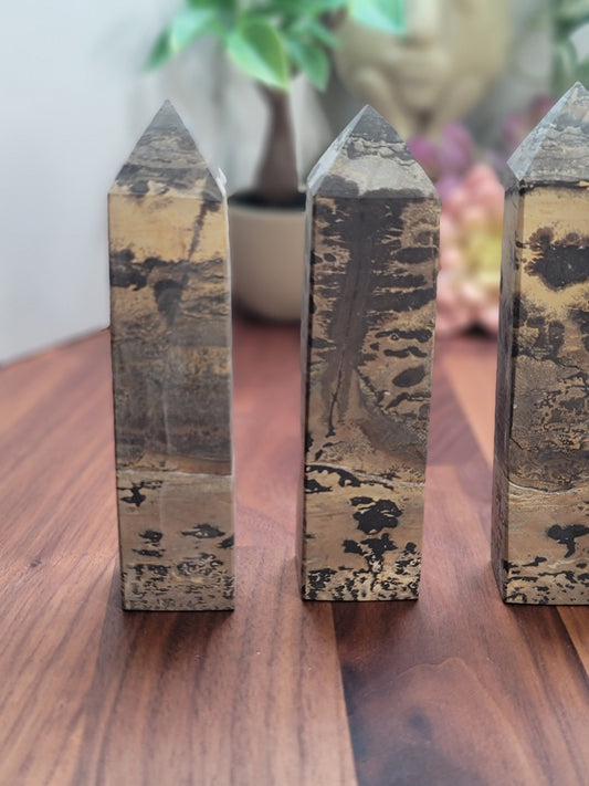 Pretty Picture Jasper Tower | 3.5 Inches | Brown White and Black Crystal Point | Intuitively Chosen
