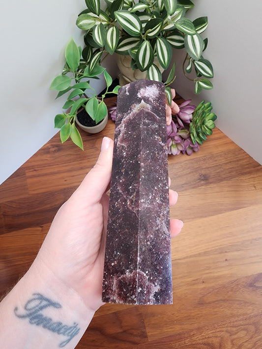 Lepidolite Crystal Tower: Hand Carved Purple Mica Decor (4+")