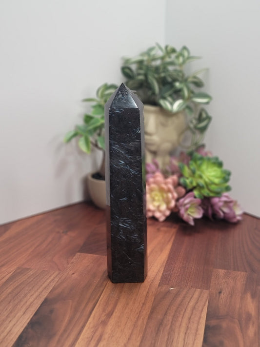 Fantastic Fireworks Garnet Crystal Tower | 8.5 Inches | Black Blue and Sparkle Crystal Point | Alpha | Only 1 Available