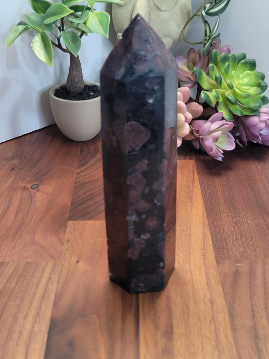 Garnet Crystal Tower | A | 6.75 Inches | Purple Red and Black | One of a Kind