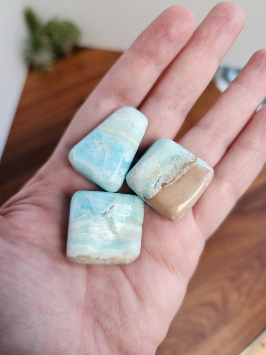 Caribbean Calcite Tumbles | Medium | Mermaid Crystal Confetti Add On | Carribean Tumble | Ocean Mix | Happy Blue with Sandy Includions