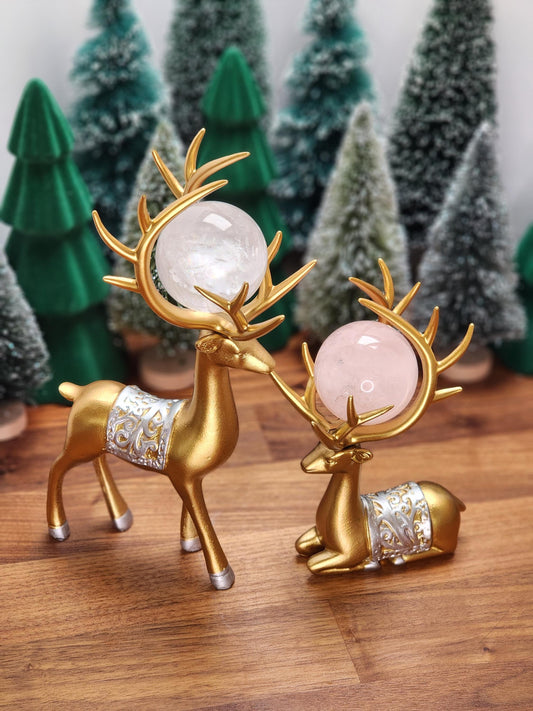 Gold Deer Crystal Sphere Stand Set: Christmas Winter Decor