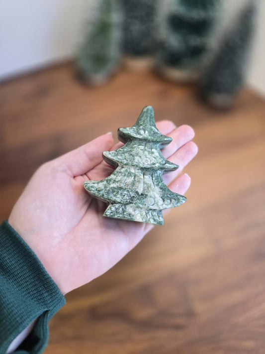 Larvikite Crystal Tree: Hand Carved Yule Figurine
