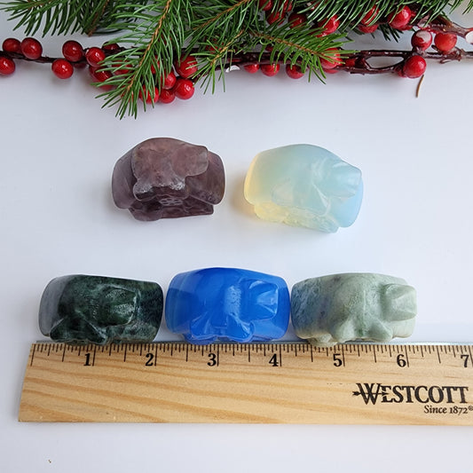 Rainbow Fluorite Christmas Carvings: Mini Crystal Figurines