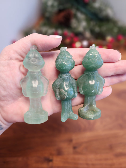 Green Aventurine 'Mean One' Christmas Crystal Carving