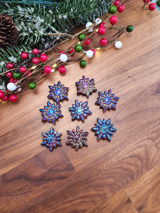 Aura Coated Mahogany Jasper Snowflake Carving: Rainbow Christmas Decor