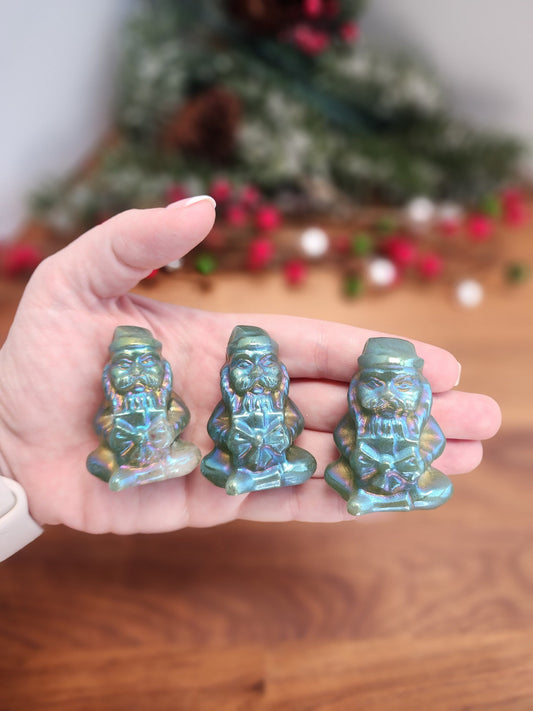 Rainbow Aura Green Aventurine Santa: Christmas Crystal Decor