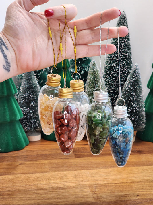 Crystal Chips Tree Ornaments | Hanging Christmas Bulbs | Kid Rock Crafts | Geology Rocks! | Green & Red | Natural Holiday Decor by Sullivan
