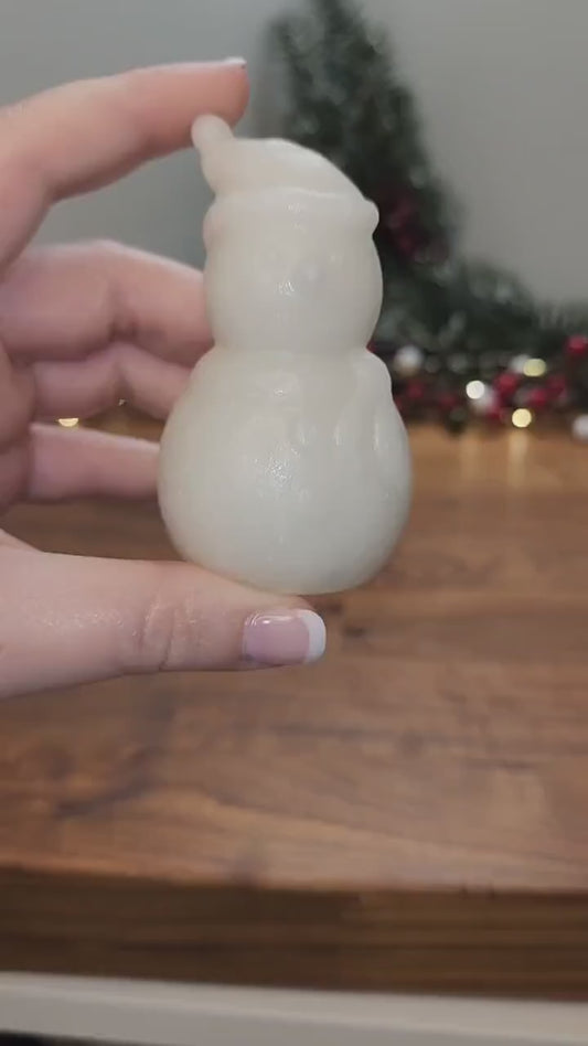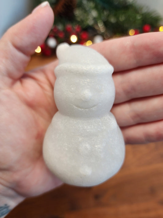 Winter Snowman Jade Sculpture - Natural Texture, Holiday Decor