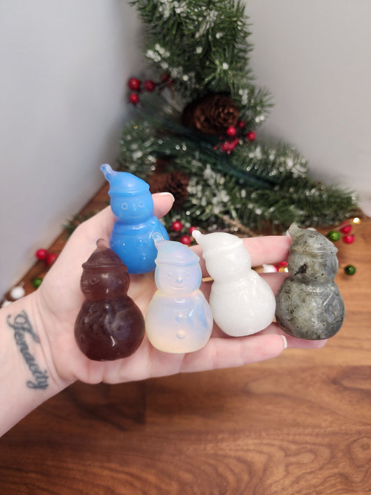 Crystal Snowman | Medium | Holiday | Labradorite, Blue & White Opalite | Christmas Decor | Winter Solstice Crystals | Choose Your Material