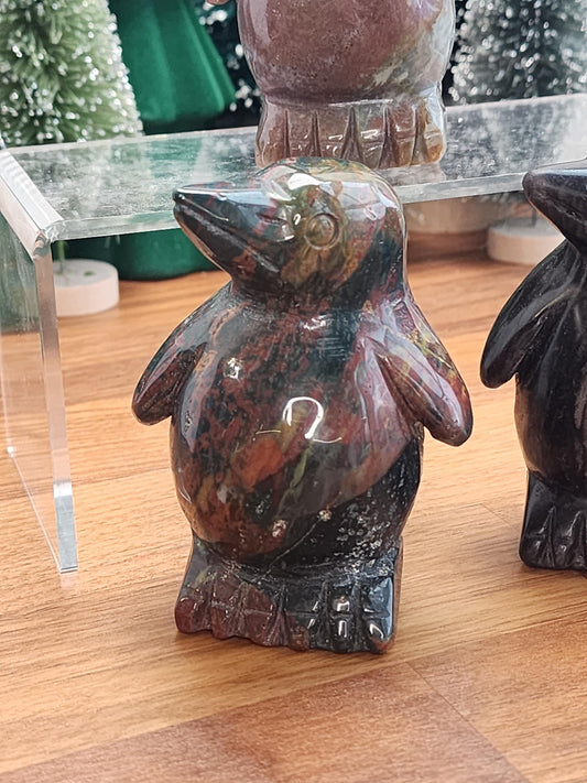 Crystal Penguin: Ocean Jasper & Silver Sheen Obsidian Holiday Decor