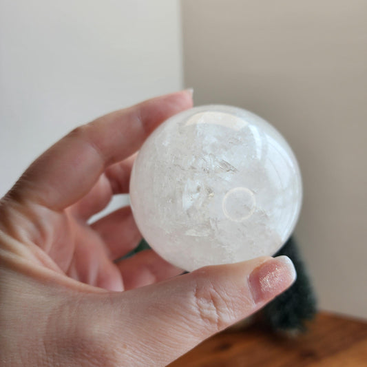 Gorgeous Optical Calcite Sphere | White Iceland Spar Crystal Ball | 60MM | Crystallized Calcium Carbonate | Tranquil Winter Home Decor