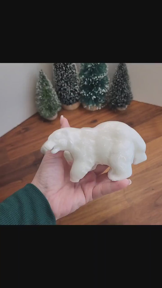 Crystal Polar Bear Sculpture, Snow White Jade (5 Inches)