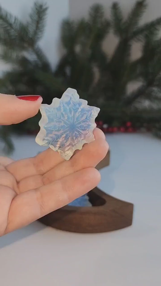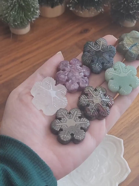 Crystal Snowflake Carvings: Holiday Mineral Decor - Opalite, Fluorite, Howlite