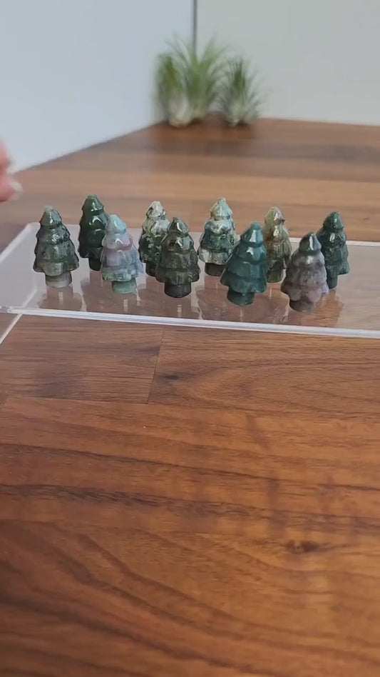 Moss Agate Mini Crystal Tree: Green and Purple Holiday Decor