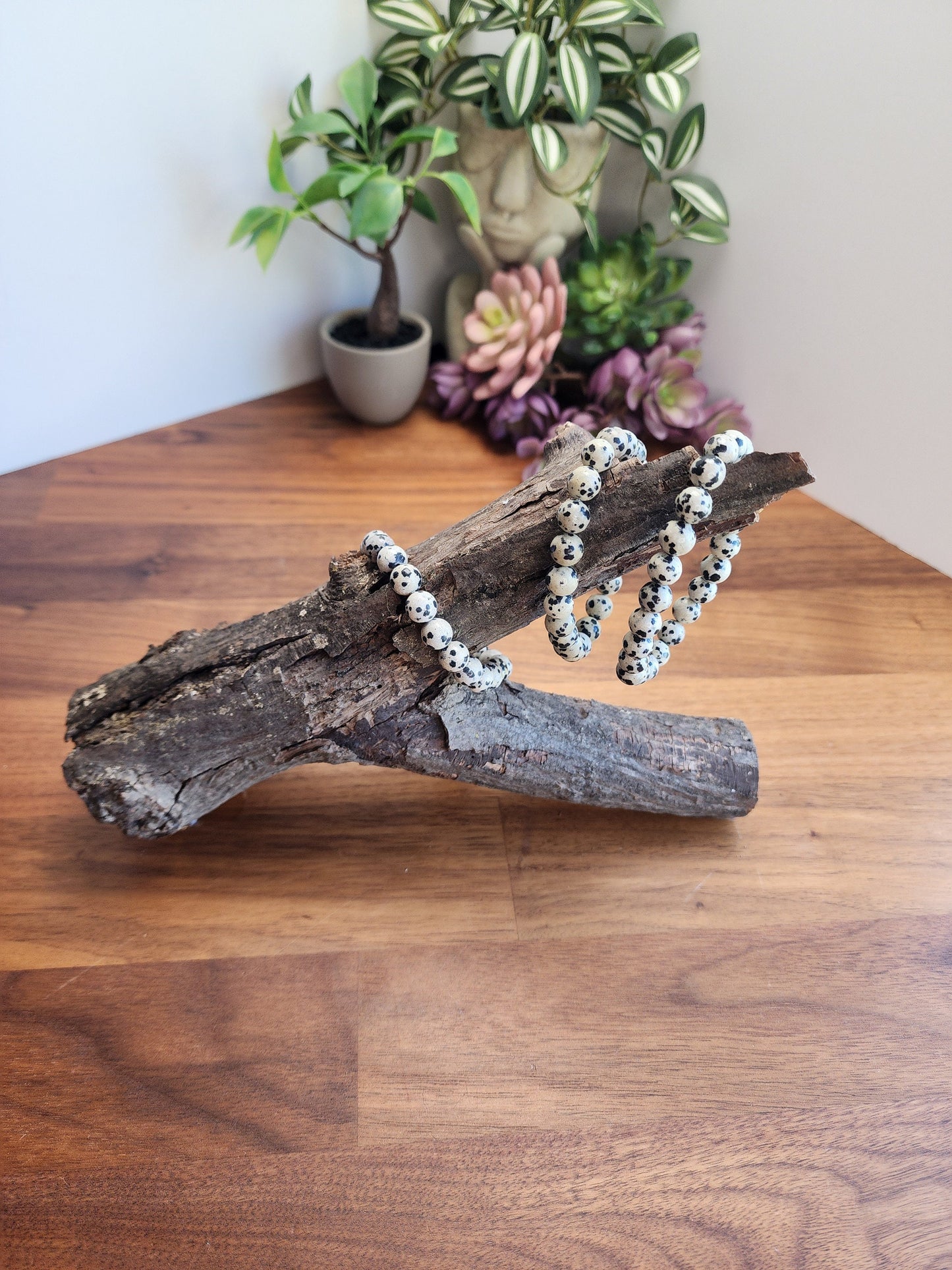 Dalmatian Jasper | 8MM Crystal Bracelet | Classy Black and White Dalmation Spotted Jewelry | As Seen in the Pot of Gold Crystal Confetti Mix