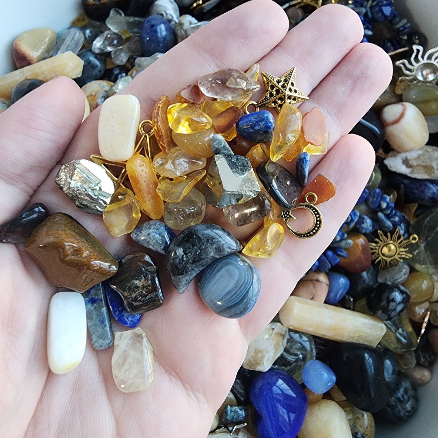 The Gold Mix is here!! Celestial themed with lots of Gold and Yellow premium tumbles/chips with some hints of blue. Amazing "Specials" in every scoop! Each scoop is packaged beautifully and includes a charm bracelet with possible Suns, Moons, and Stars.