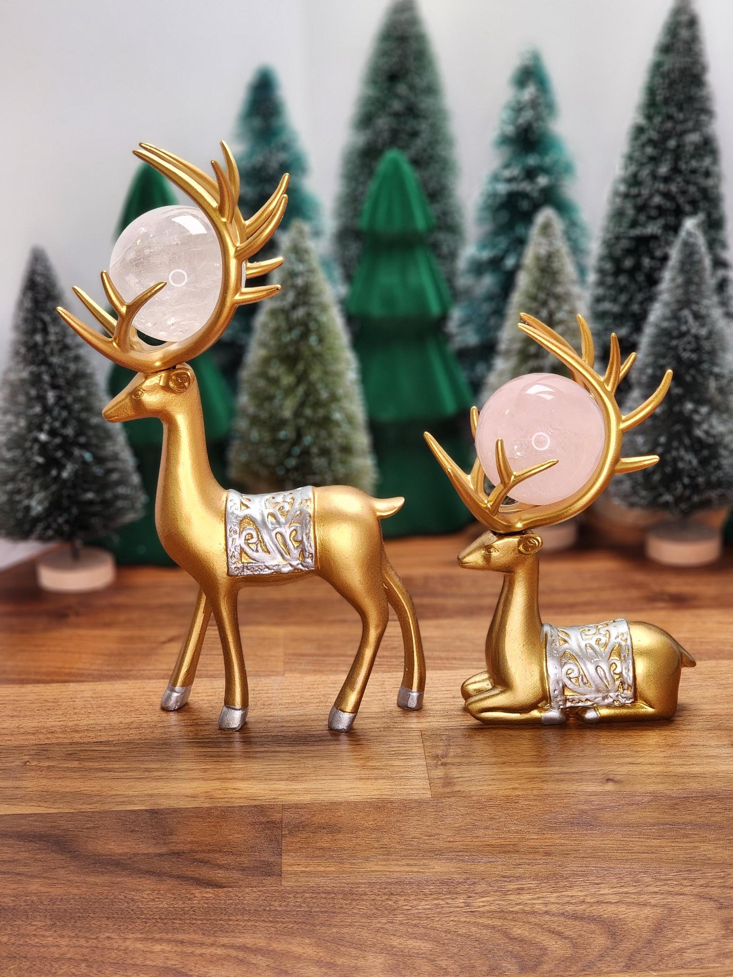 Gold Deer Crystal Sphere Stand Set: Christmas Winter Decor
